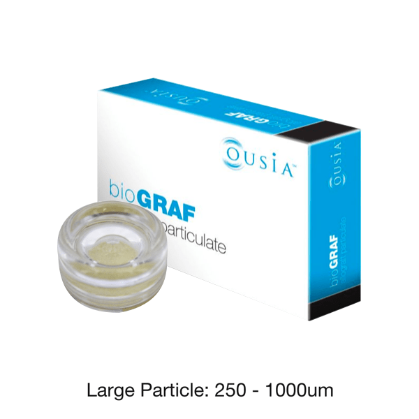 bioGRAF Allograft Particulates preserve natural collagen and minerals with the bony structure of allograft. The existence of these natural minerals and collagen facilitate remodeling of the host bone suitable for implantation. bioGRAF products are processed to promote new bone formation.