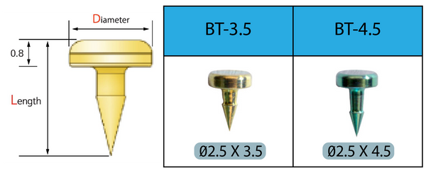 - Choose from 21 Tacks (4.5mm L) or 80 Tacks (40 of 4.5mm L & 40 of 3.5mm L).