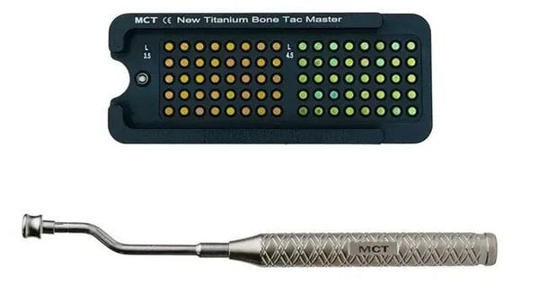 Stabilize Barrier Membranes with our affordable titanium bone tack kit. See kit components below. The MCT Bone Tack Kit provides dental clinicians with the proper instrumentation for fixating or stabilizing guided tissue regeneration membranes to bone. The Membrane Tacks are small sharp titanium pins used during the healing process by providing an attachment mechanism for the membrane to local and adjacent bone at the surgical site.