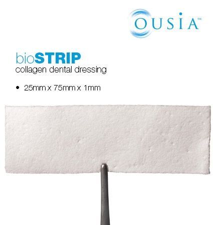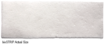 bioStrip is a standard collagen wound dressing tape made from Type I bovine collagen sourced from the Achilles tendon, which may be used to help in the healing of soft tissue donor sites, localized ridge defects, and socket grafting.