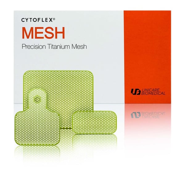Cytoflex® Titanium Mesh is designed to reconstruct the alveolar ridge by retaining the bone grafting material and providing a favorable environment for complete, healthy new bone growth with desired contours. The pliable titanium mesh conforms easily to tissue contours, yet offers sufficient stiffness to retain the graft material in the desired shape when osseous tissue regenerates.