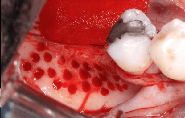 Cortical bone perforation (intramarrow penetration) refers to the intentional creation of small holes in the cortical bone. It aims to enhance angiogenesis and osteogenesis during guided bone regeneration procedures.