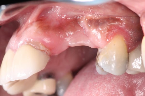 The patient presented with a poorly healed site with previously failed dental implants. An aggressive guided bone regeneration procedure was indicated, using a combination of DALI Grafts, including, DALI Amnion Chorion Membranes, to facilitate bone growth for future implant placement.