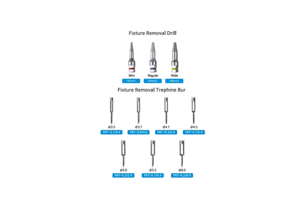 Some patients experience pain under high reverse drive, and some implants will require these high torques for removal. In these extreme cases, as per Froum S (Compendium. 2011;32(7):2-24), to remove the implant without damaging the surrounding bone, trephines are used with the FR screws. However, do NOT use the trephines all the way to the end of the implant. Instead, use the trephines for 1/2 or 1/3 and then use the specialized fixture removers and reverse threaded driver to remove the rest of the implant.