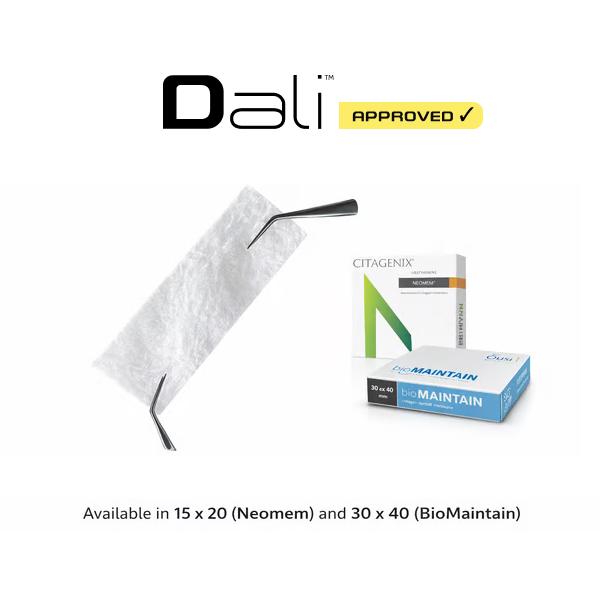 Our DALI-approved standard, sustained function, resorbable collagen membrane is made of Type 1 bovine collagen matrix and indicated for use in guided tissue procedures to enhance wound healing. Watch video and review Neomem cases below.
