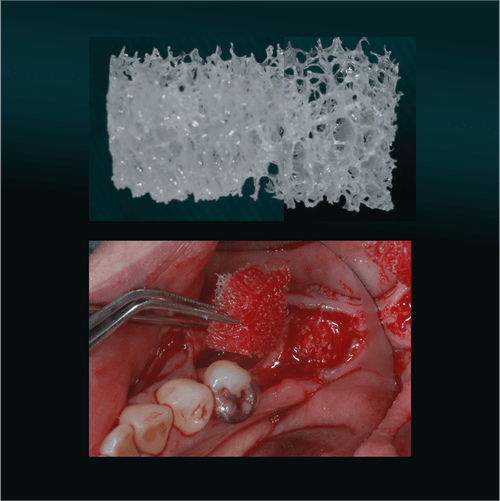 - Collagen-like porous structure, allows for excellent stem cell matrix and vascularization