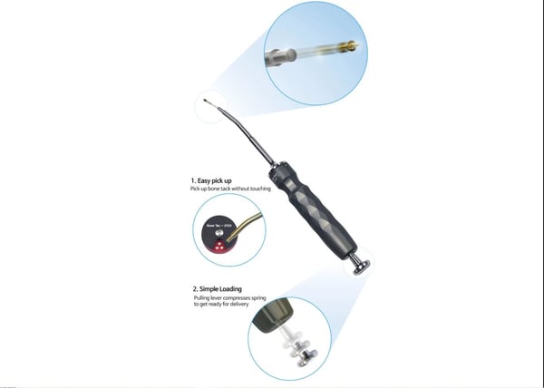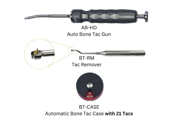 Yes, you are correct. Using bone tacks in the mandible is somewhat different because of the dense cortical bone in the mandible. There are 3 options for placing the tacks in the mandible with the Automatic Bone Tack: Use a piezoelectric bur or drill to make a line (i.e. score the cortical bone) where the tacks are going to be inserted. This will allow for easier penetration of the tacks and also create extra blood supply for your GBR. Fire the automatic bone tack kit pull back device twice instead of only once when inserting into the mandible. To do this, you use the tack pull back to insert the tack into the mandible area the first time (it won’t go completely in because of the bone density). Then you remove the instrument, pull back again, place the automatic bone tack kit on the tack, and fire again to fully insert the tack. Use a standard manual tack holder with a mallet to place or simply push the tack further into the mandible.