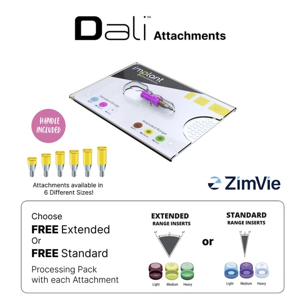The DALI Denture Retention Attachment (DRA) system works in the same way as Locator ® Zimmer attachments. Simply, choose your Zimmer implant platform, and then choose your tissue height.